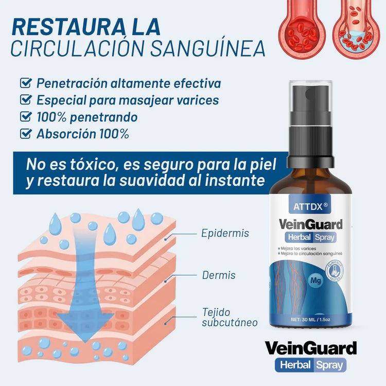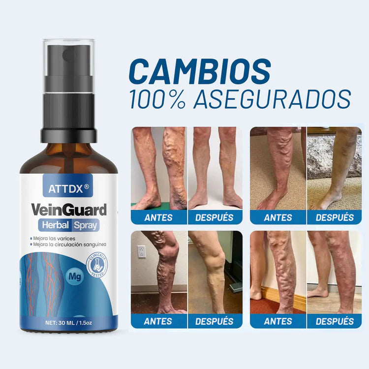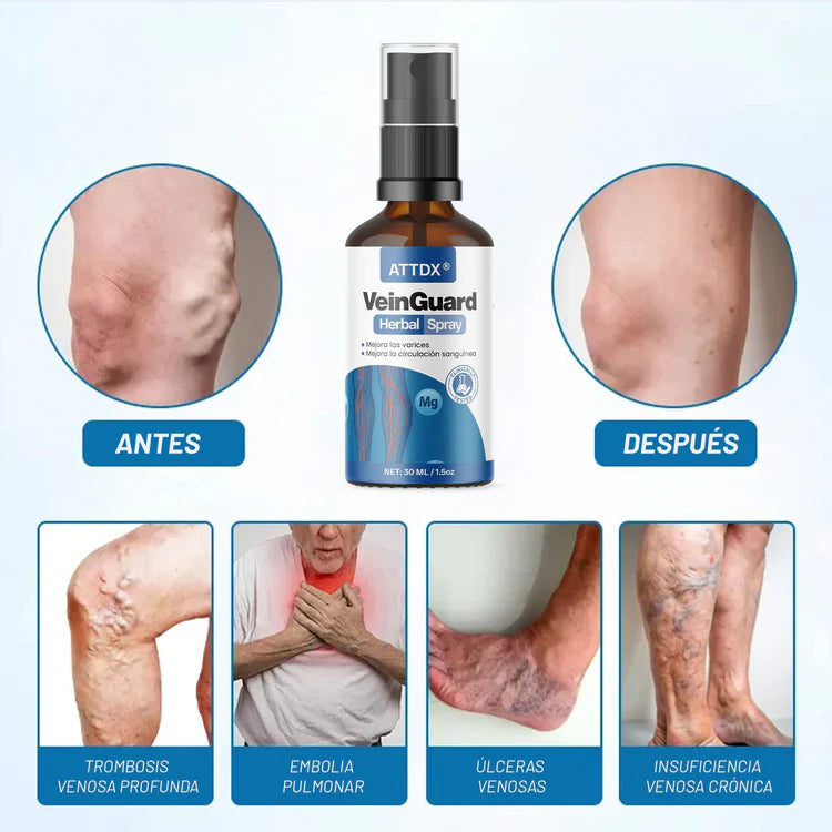 Es un spray herbal clínicamente probado que mejora la circulación sanguínea, reduce las venas varicosas y alivia la inflamación. Su fórmula natural penetra en la piel, favoreciendo el flujo sanguíneo y regenerando las paredes venosas desde la raíz.